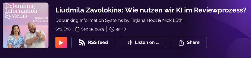I recently joined Tatjana Hödl and Nick Lüthi on the Debunking Information Systems podcast – my very first time doing something like this. Especially, speaking in German (which still makes me cringe to hear) publicly was well outside my comfort zone.